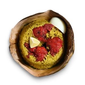 Donne Biryani is a mouthwatering and aromatic dish that originates from the southern region of India, particularly from the state of Karnataka. It is a flavorful rice dish prepared with fragrant Basmati rice, tender pieces of meat or vegetables, and a blend of spices that adds depth and richness to every bite. What sets Donne Biryani apart is the unique method of cooking and serving. The biryani is traditionally cooked in a donne, which is a large, shallow, and sturdy bowl made from dried leaves of the areca palm tree. This gives the dish a distinct earthy aroma and imparts a subtle smoky flavor that enhances the overall experience. The biryani is often served with raita, a cooling yogurt-based condiment, and accompanied by papadums or pickles.